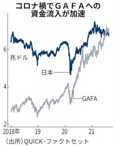 GAFA、時価総額で日本株超え