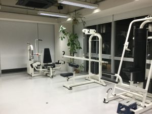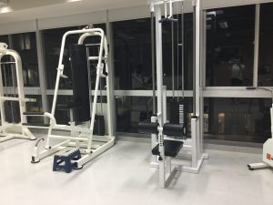 隣は重りをつけたものを両手で下に押し下げる…けど